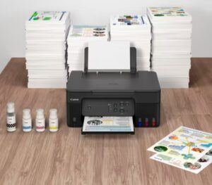 La série PIXMA G a été conçue pour être fonctionnelle. En plus Les réservoirs d’encre frontaux facilitent le remplissage. Et aussi permettent de contrôler facilement le niveau d’encre. Vous évitant ainsi toute panne inattendue. De plus, son design compact et élégant est idéal pour une utilisation à la maison ou au bureau.