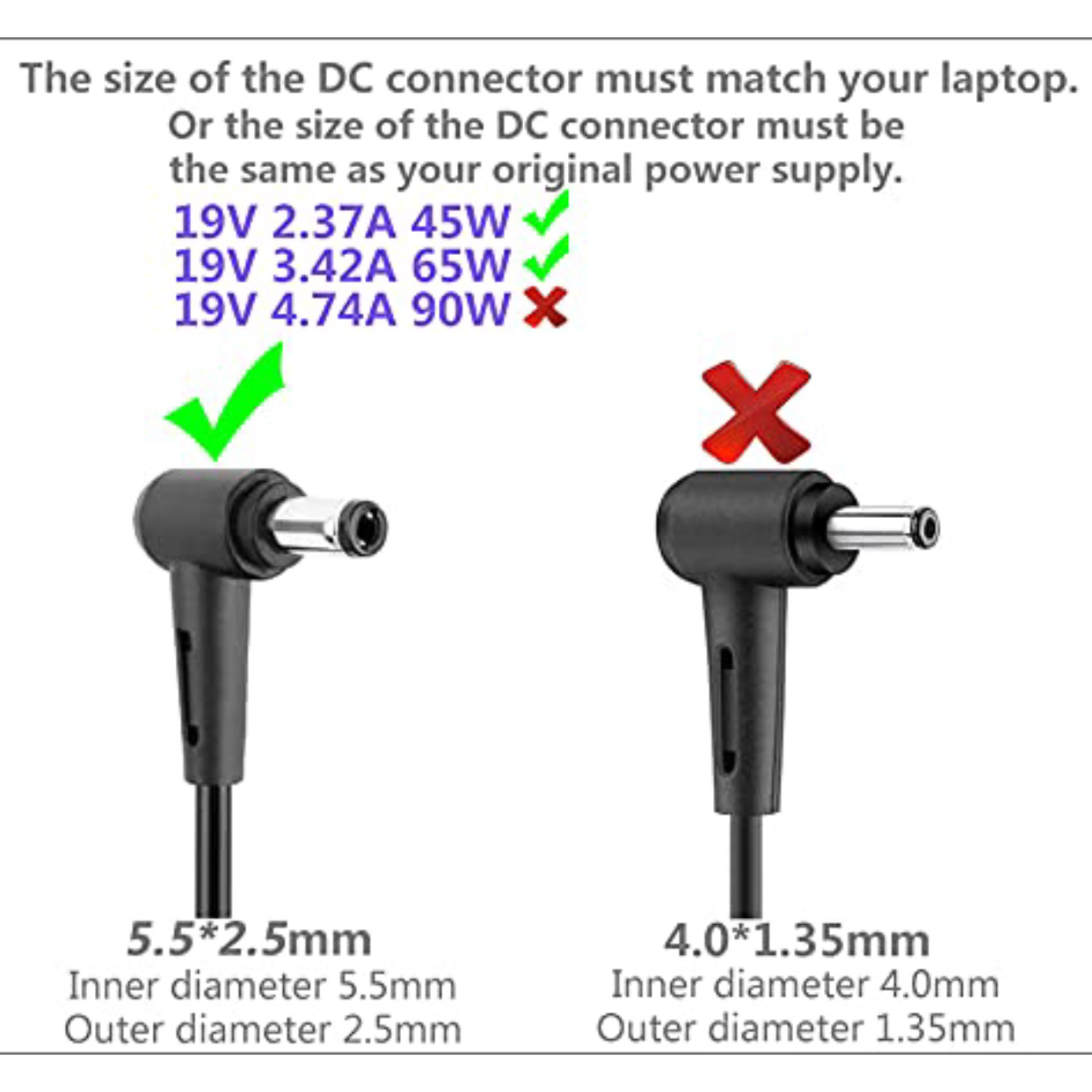 Le forfait comprend: 1 x adaptateur secteur 1 x câble d’alimentation (fiche UE) (Selon les pays de livraison, distribuer l’adaptateur). Nom: adaptateur secteur Modèle: PA-1600-07 Spécification: Tension d’entrée: 100-240V 1.5A 50 ~ 60Hz Tension de sortie: 19V-3.42A Taille de l’interface: 5.5mm x 2.5mm Longueur de ligne de sortie: environ 1 m Longueur du câble d’alimentation: environ 1,8 m Taille: environ 11,5 x 5 x 3