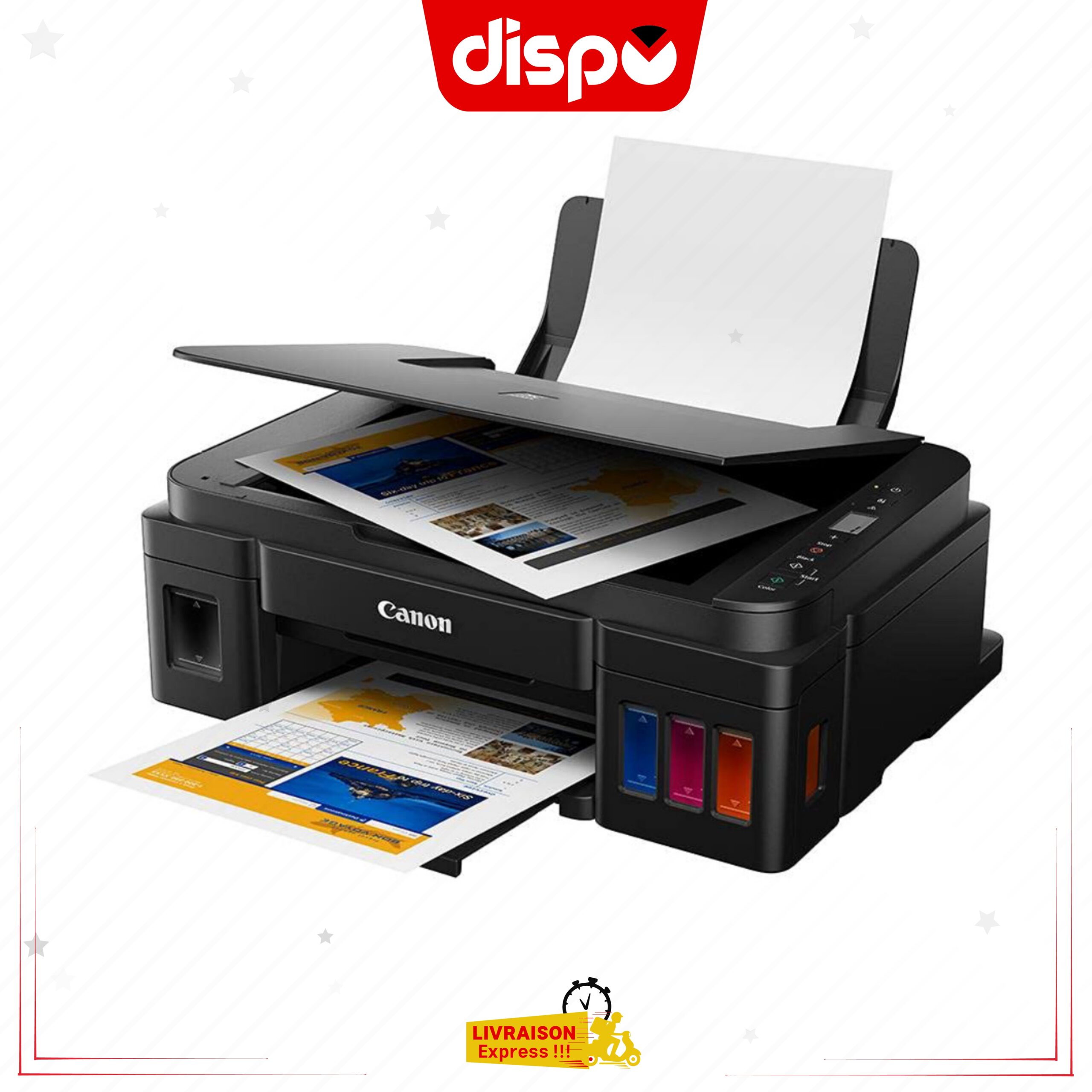 Ensuite L’encre noire pigmentée haute qualité de l’Imprimante Multifonction Canon PIXMA G2411 et les encres couleur à base de colorants produisent respectivement un texte d’une netteté exceptionnelle. Mais aussi et surtout des images d’une vivacité éclatante. Ainsi Vous pourrez également imprimer une photo sans bordure.