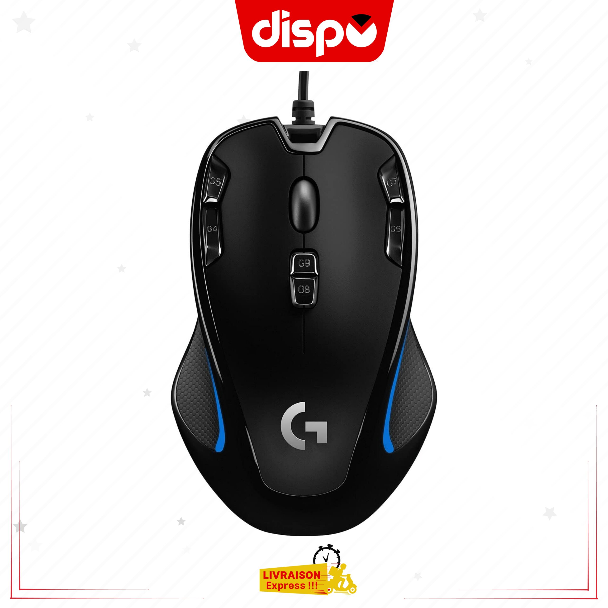 La Logitech Gaming souris G300s est équipée de neuf commandes programmables. D’abord qui vous permettent d’assigner les commandes aux boutons idéalement placés. La mémoire intégrée vous permet d’enregistrer jusqu’à trois profils de jeu ou de joueur sur la souris. Et ainsi de l’utiliser sur un autre ordinateur sans avoir à la reconfigurer à chaque fois. De plus, Le logiciel permet de personnaliser la souris grâce à de simples opérations de glisser-déposer. Aussi, La forme profilée ambidextre est confortable dans chaque main. Un capteur optique pour le jeu suit de façon précise les mouvements, lents ou rapides, sur une multitude de surfaces. Ainsi, Il offre une réponse cohérente aux mouvements de votre main.
