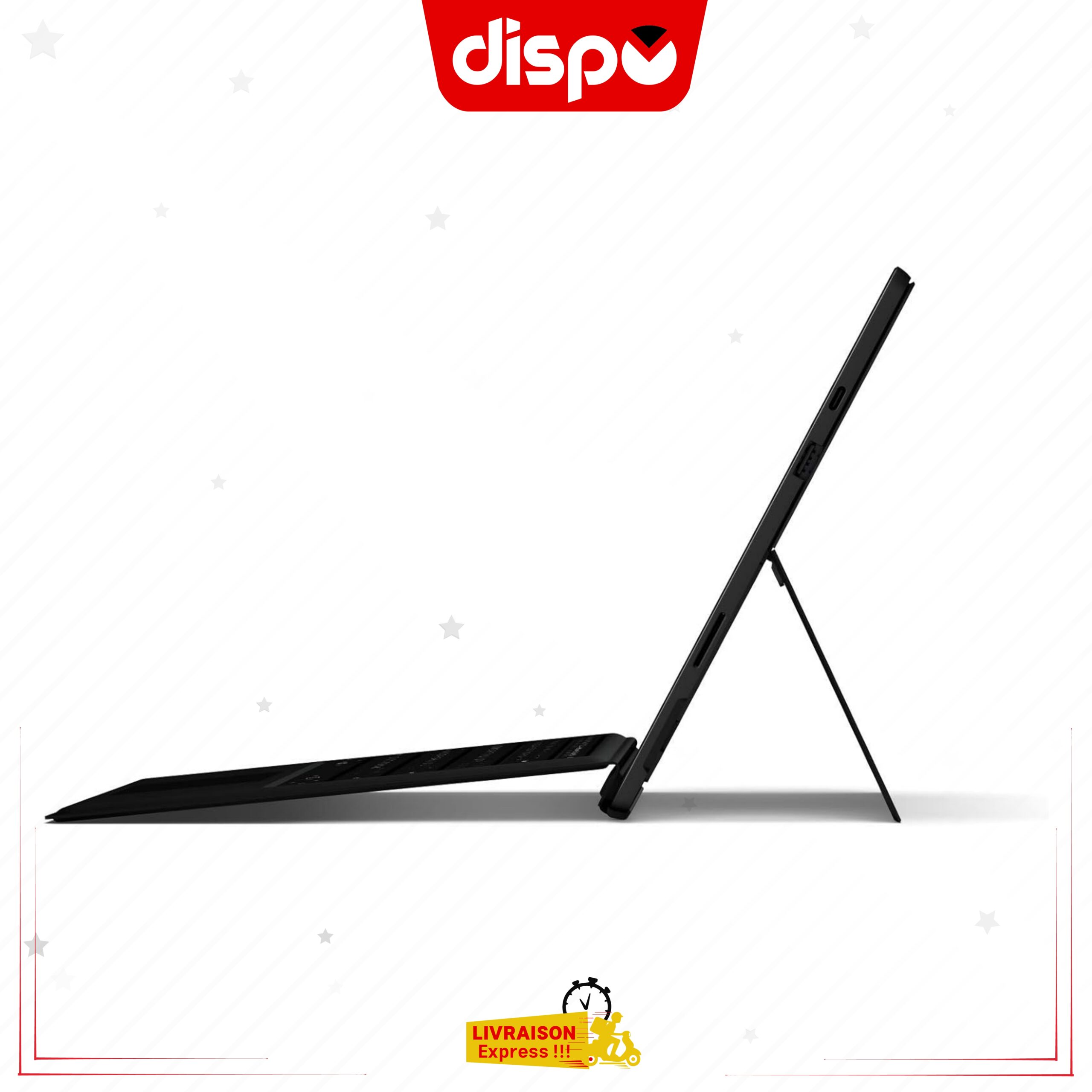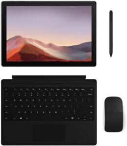 De plus, Travaillez n’importe où. Surface Pro Signature Type Cover est spécialement conçue pour s’adapter à pratiquement n’importe quel angle. Et, Il suffit de cliquer sur le support et d’utiliser trois façons différentes : avec Surface Pro 7. Avec son Béquille ouverte comme un ordinateur portable. Il est pliable pour une tablette ; et fermé pour protéger l’écran. Et économiser la batterie.