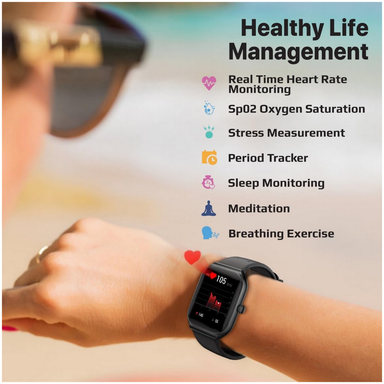 ProWatch-AM19 est une montre intelligente de suivi de la condition physique conçue pour vous aider à mener une vie plus saine et plus active avec un capteur de fréquence cardiaque, un capteur podomètre, un capteur de niveau d'oxygène dans le sang, un suivi du sommeil et 110 modes sportifs. Profitez d'une connectivité ininterrompue avec les deux versions Bluetooth BT 3.0 + BLE 5.2 et profitez des appels BT mains libres. Le superbe écran AMOLED toujours allumé de 1,96 pouces avec une résolution de 410 x 502 favorise l'expérience utilisateur. Alors que la batterie de 300 mAh est plus que équipée pour gérer les voyages d’affaires et les vacances, elle fonctionne pendant 10 jours. Conçu pour résister à l'eau et à la poussière avec IP68, le ProWatch-AM19 est le compagnon idéal pour chaque aventure en plein air.