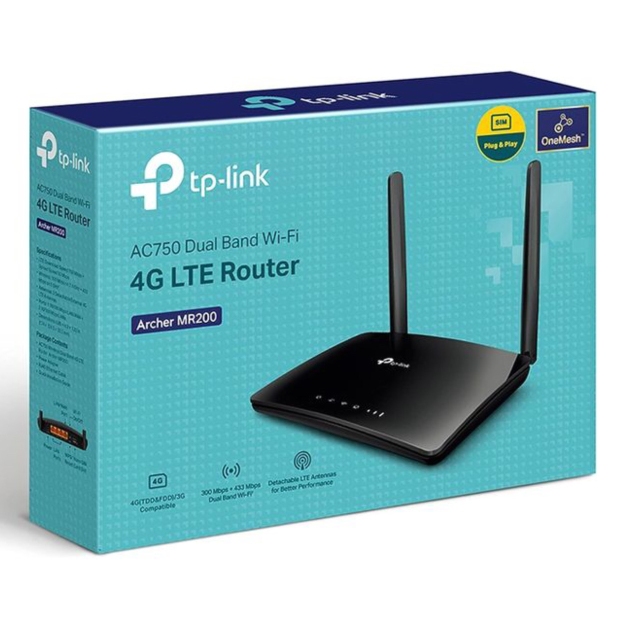 TP-Link Routeur MR200 4G LTE 150Mbps WiFi AC 750Mbps, 4 ports Ethernet, carte MicroSIM